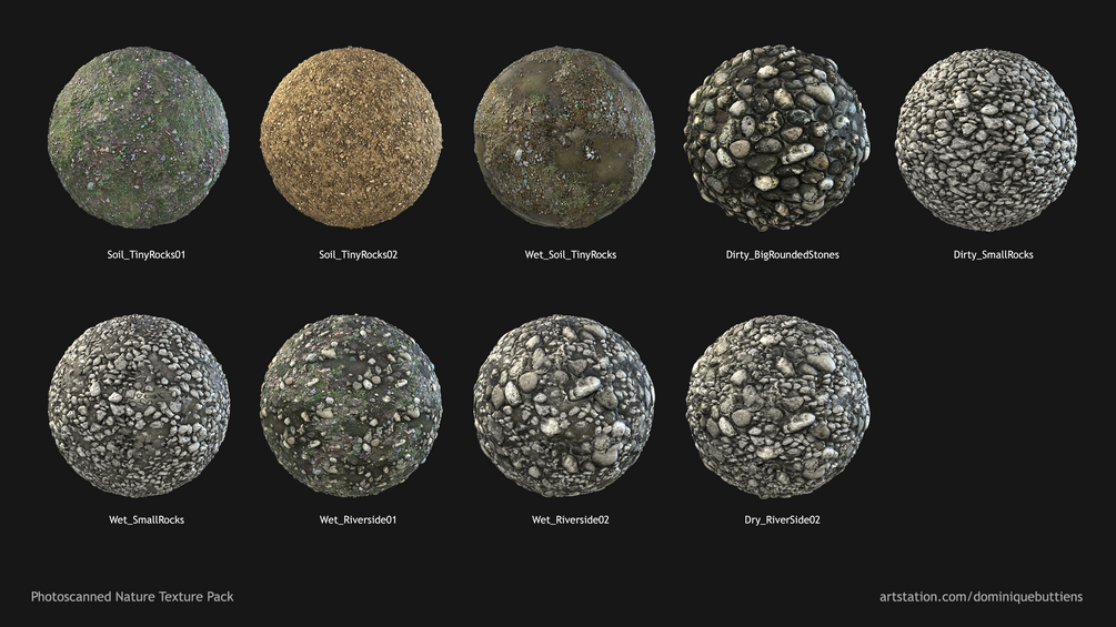 This pack includes 25 realistic tiling texture sets created with Substance based on photoscans.